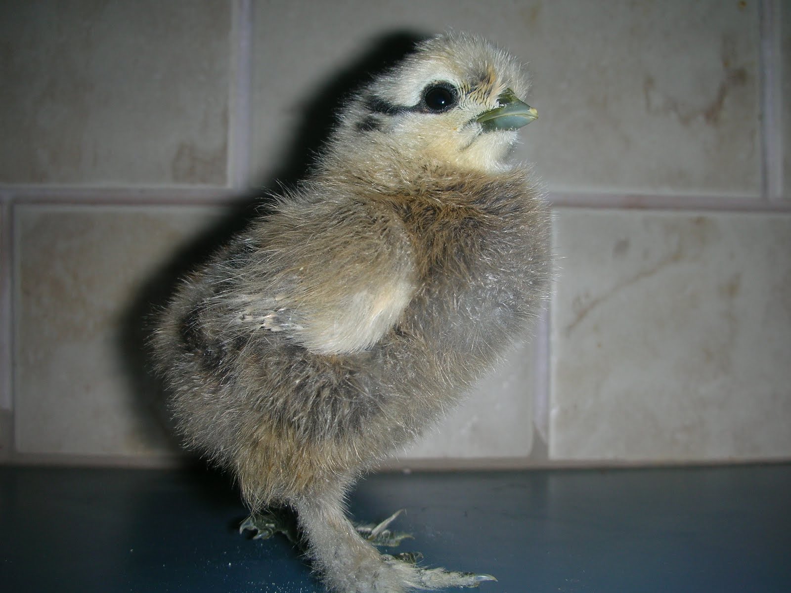 This particular chick, shown above, is a Silkie bantam of the Partridge color variety.